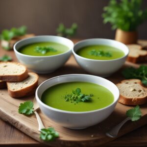 Esta deliciosa crema de berro y apio es perfecta para una comida ligera y saludable. Acompañada de tostadas de pan negro, ofrece un equilibrio ideal entre sabor y nutrición. Es una receta sencilla y rápida de preparar, ideal para cualquier ocasión.